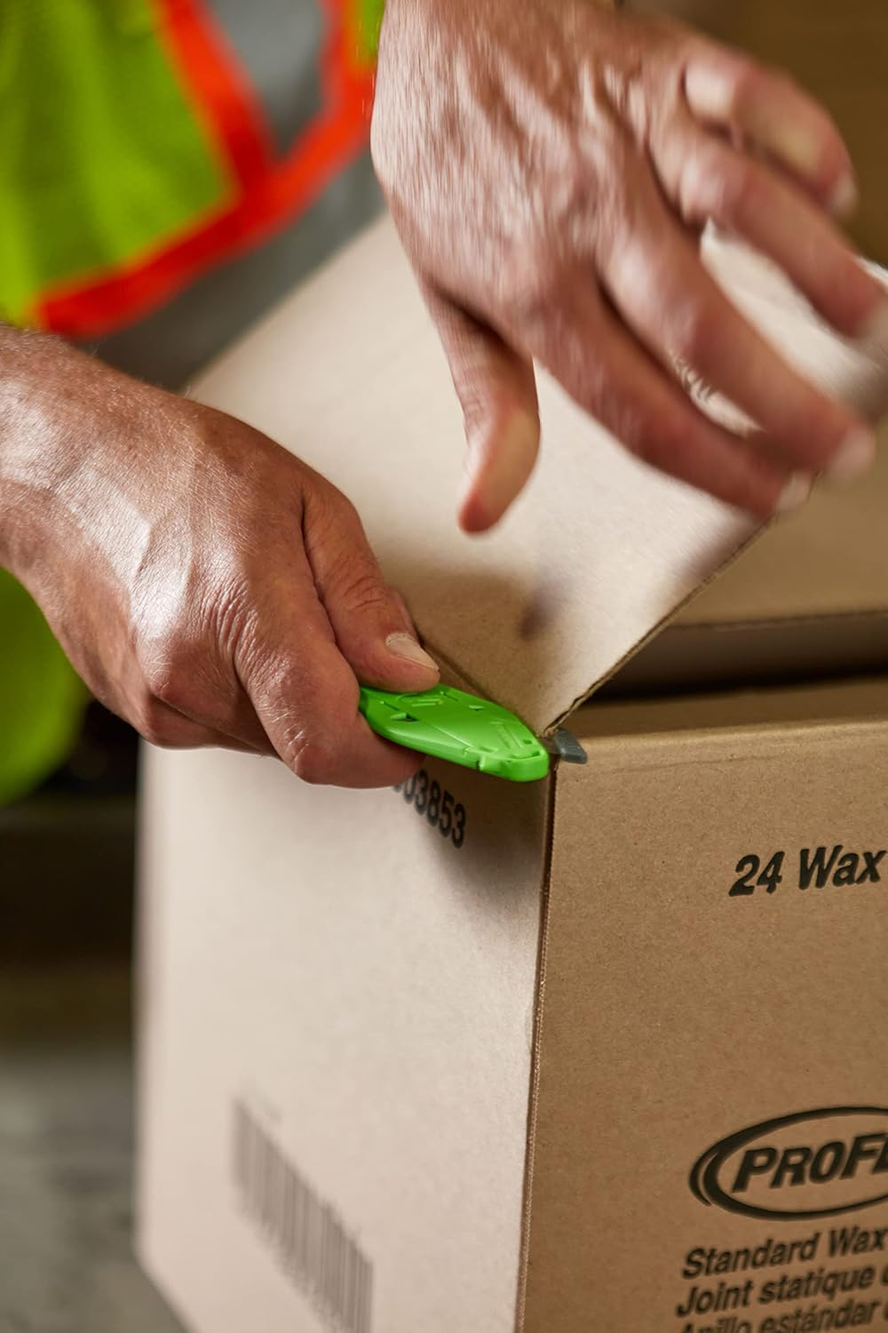 Das CB100 wurde für den intensiven Einsatz in Logistik und Industrie konzipiert. Der ergonomische, beidhändige Griff sorgt dafür, dass sowohl Links- als auch Rechtshänder ermüdungsfrei arbeiten können. Die verdeckt liegende Klinge verhindert zuverlässig den Kontakt mit der Haut und schützt gleichzeitig den Packungsinhalt vor Beschädigungen.